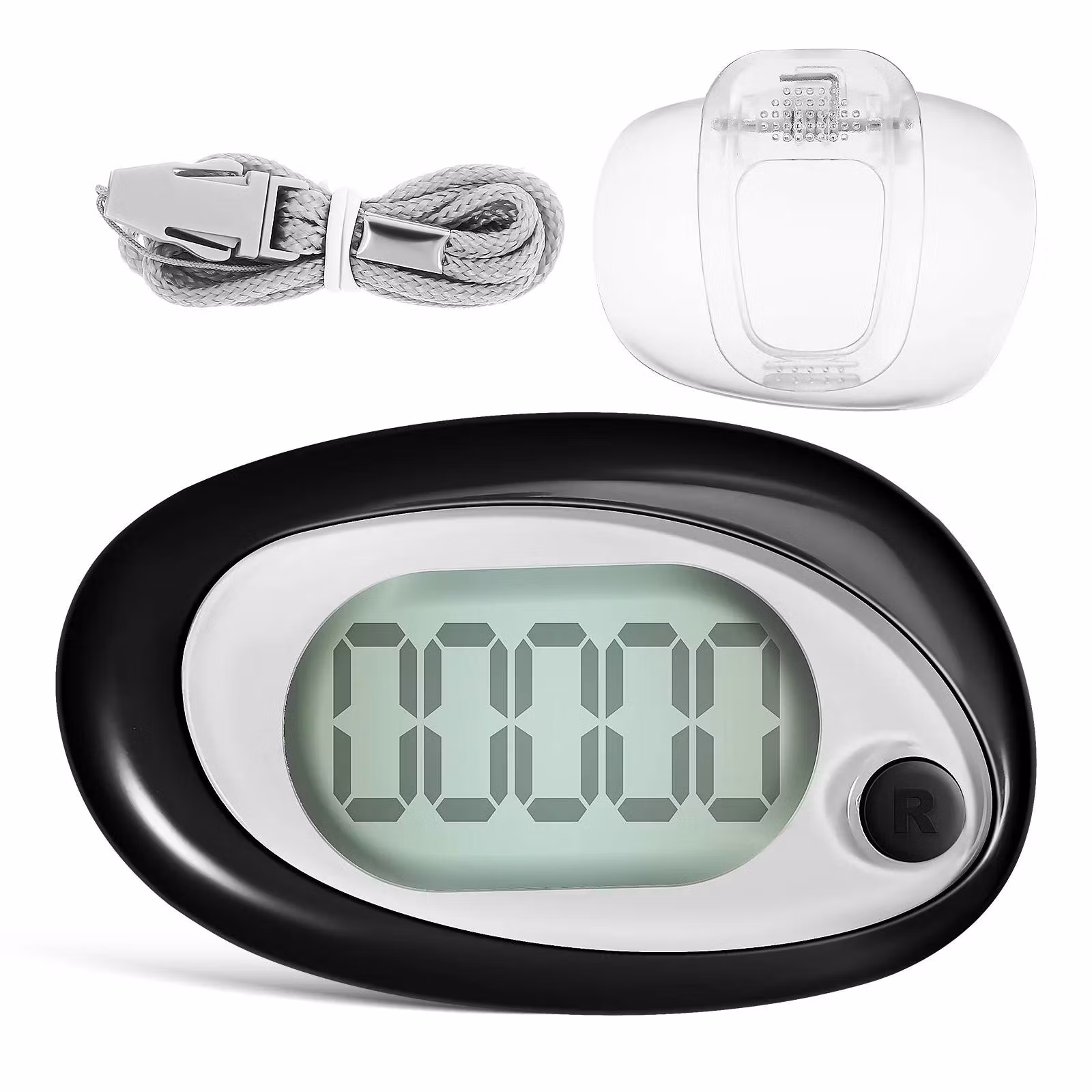 Den spårar exakt varje steg du tar när du går och har flera användningsområden. Komplett med en bekväm rem för mångsidig användning, denna stegräknare är alltid till hands oavsett om den är fäst vid bältet eller säkert hängd runt halsen.