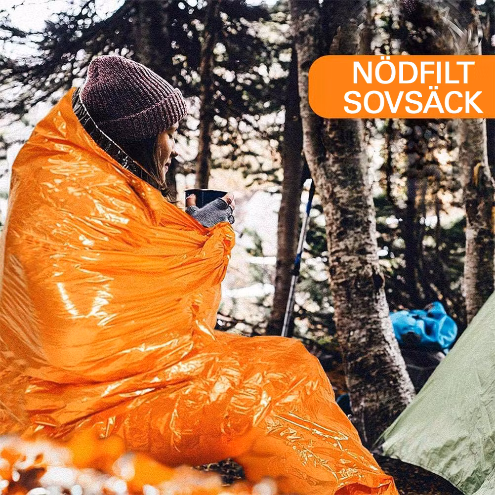 Sovsäckar som nödutrustning är lätta, hopfällbara och lätta att bära. Du kan enkelt passa dem i ett första hjälpen-kit, överlevnadskit eller bilhandskfack, vilket ger gott om plats i ryggsäcken för annan utrustning. Varje nödfilt kommer med i en liten nylonväska.