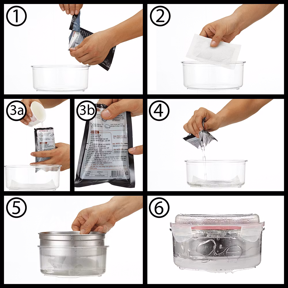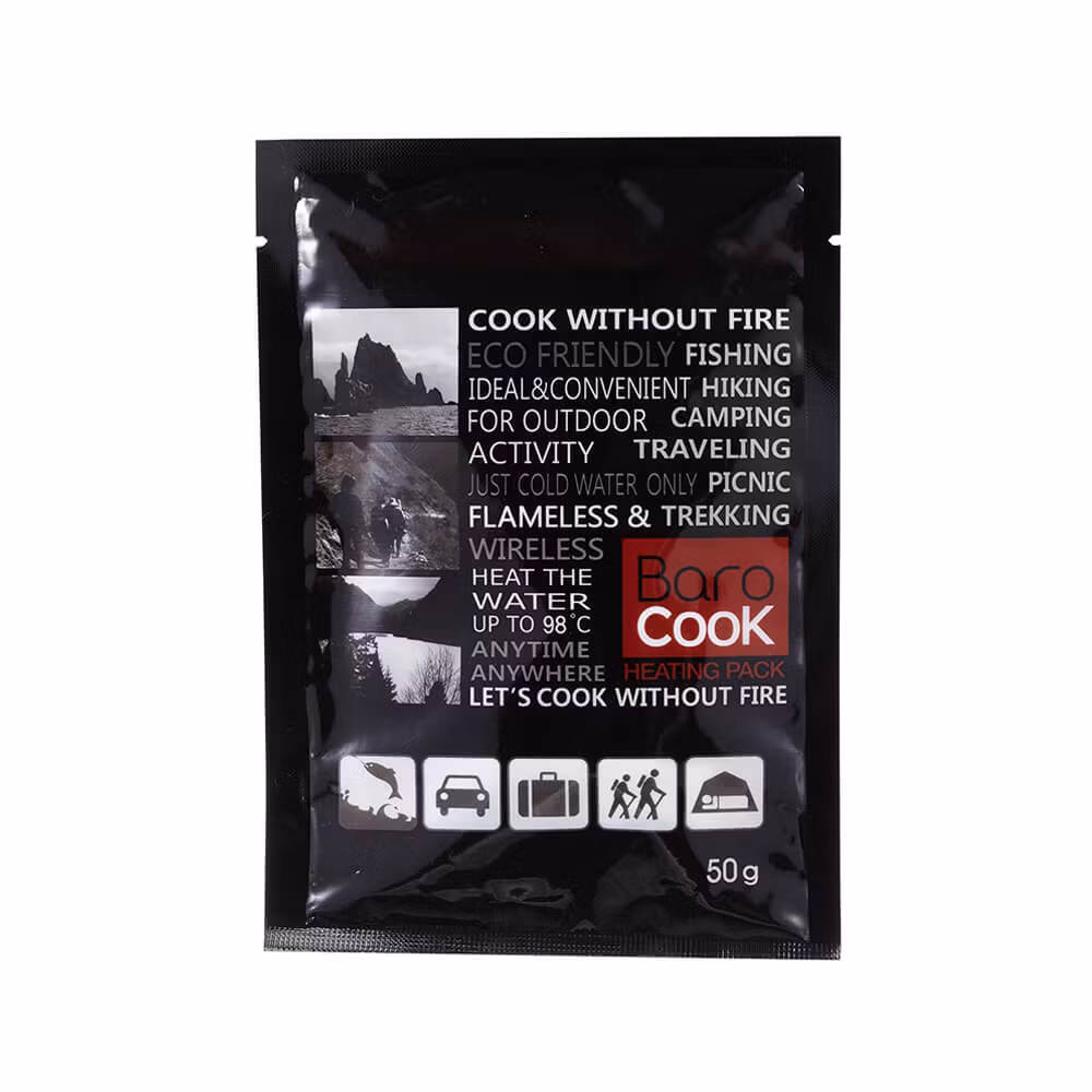 -Lägg maten i en behållare och tillsammans med en Barocook 50 gr värmepåse i Zipperbagen. Tillsätt vatten enligt måttet på värmepåsens baksida.