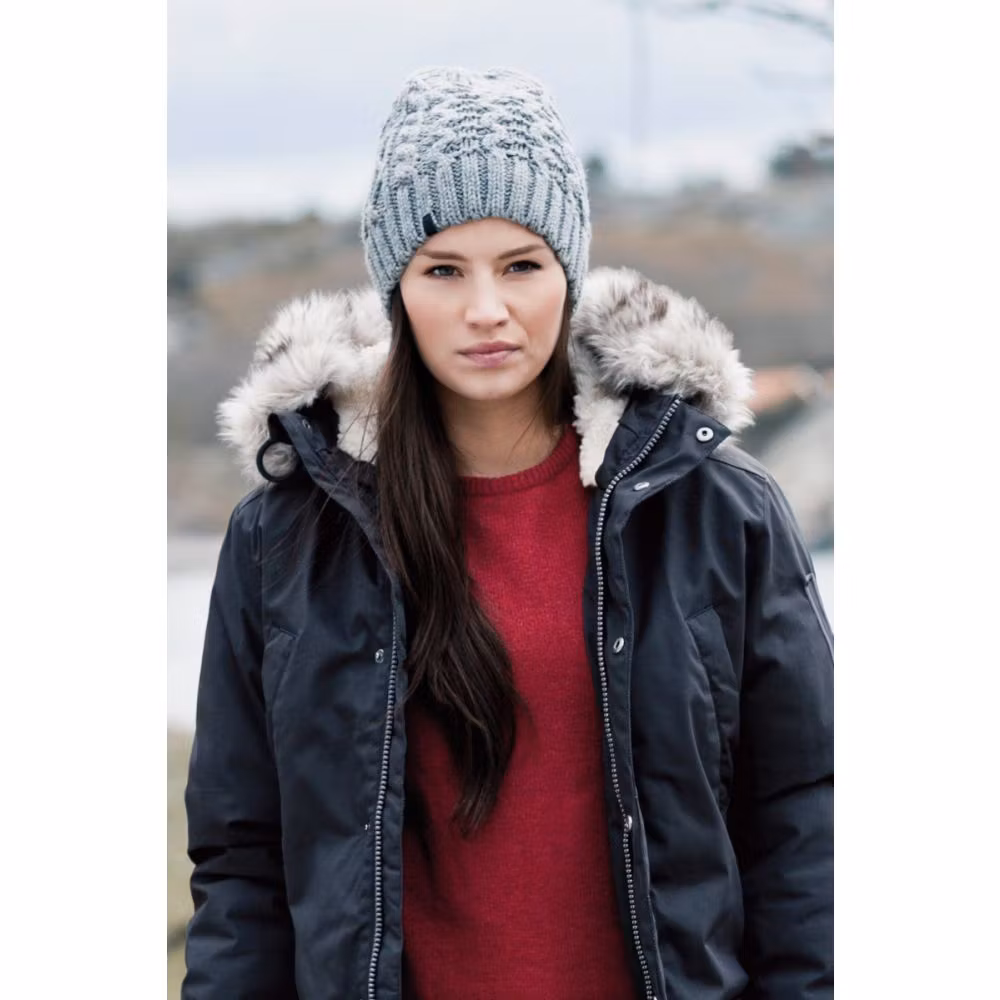 Vår stickade mössa är den perfekta accessoaren för att hålla dig varm och stilig under de kalla månaderna! Den är tillverkad av ett mysigt material som ger extra värme och komfort. Mössan har ett trendigt flätmönster, ribbstickning och små färgeffekter i det svarta, som ger den ett unikt utseende. Den är både bekväm och stilren, så du kan bära den med stolthet. Så ta på dig denna stickade mössa och känn dig varm, bekväm och stilren!